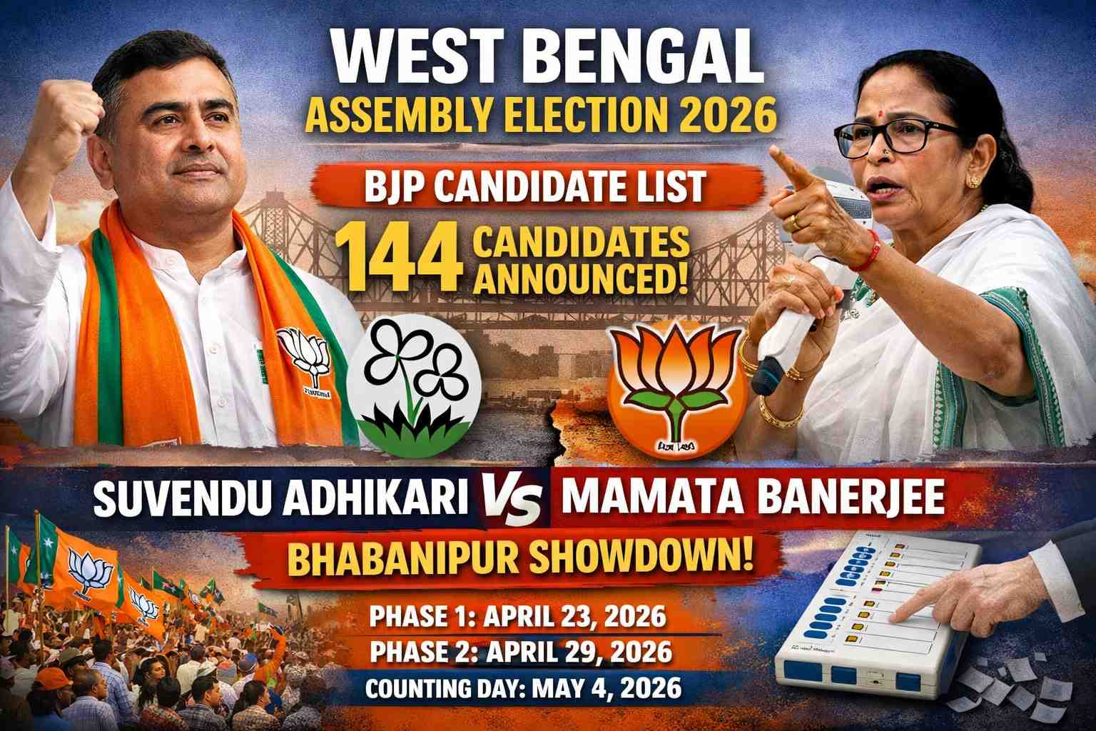 BJP West Bengal Candidate List 2026: 144 Candidates Announced, Suvendu Adhikari vs Mamata Banerjee Battle Heats Up