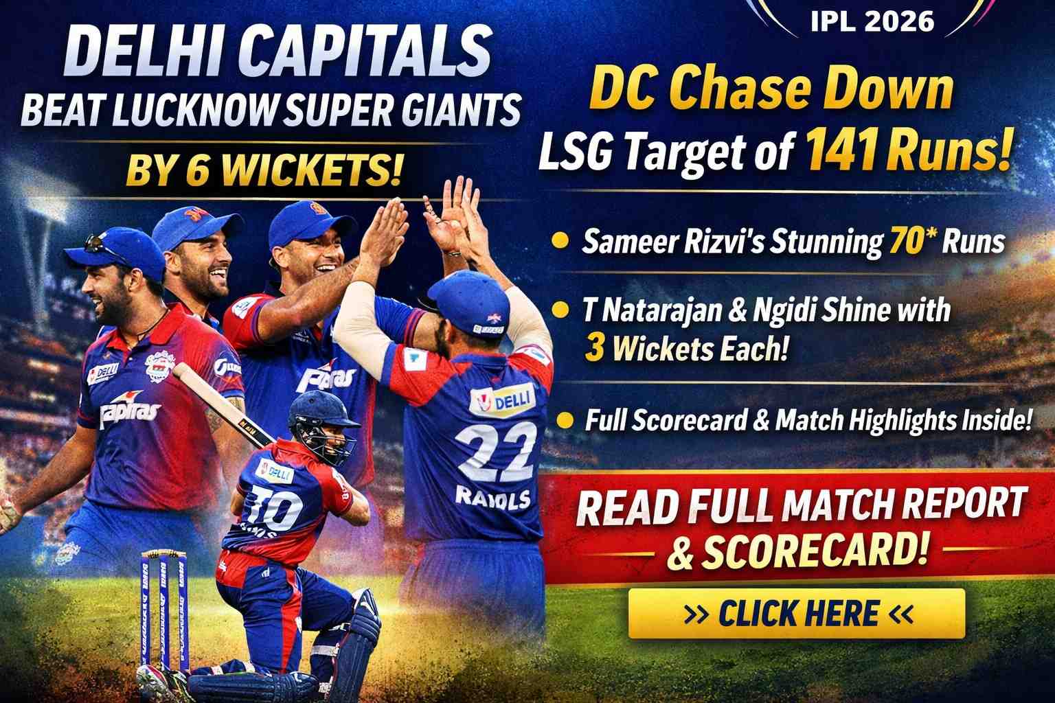— A.P.J. Abdul KalamLucknow Super Giants vs Delhi Capitals Match Prediction 2026 – Today IPL Match Analysis, Pitch Report & Winning Chances