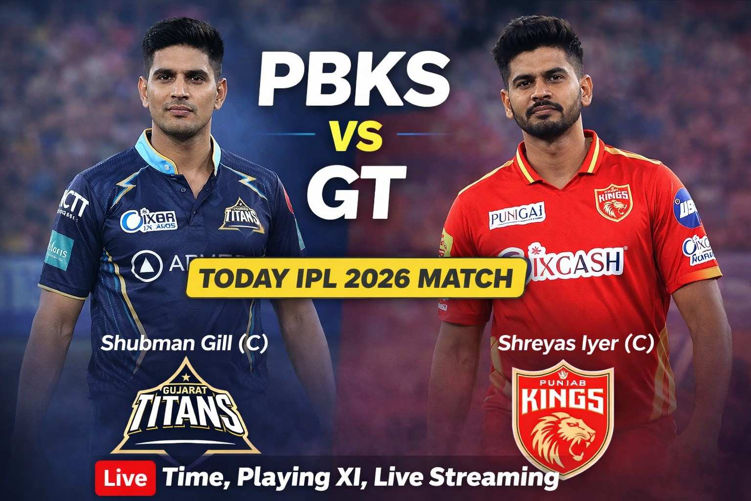 In this match, Shubman Gill will lead Gujarat Titans, while Shreyas Iyer will captain Punjab Kings. Gill is currently in very good form in T20 cricket and has been one of the most consistent performers in IPL in recent years. He has improved his strike rate and is now playing more attacking cricket. Gujarat Titans have built a strong batting lineup around him, and players like Sai Sudharsan give good support at the top.