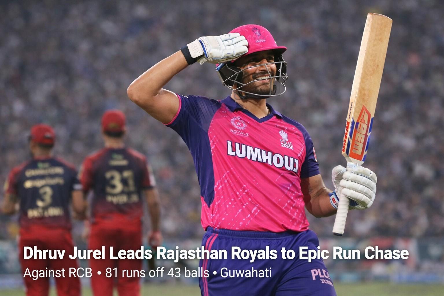 In a standout performance in the IPL 2026, Dhruv Jurel emerged as the central figure for Rajasthan Royals, delivering a match-winning innings that guided his side to a successful run chase against Royal Challengers Bengaluru in Guwahati. Chasing a competitive target of 202, Jurel played a composed yet impactful knock of 81 off 43 balls, anchoring the innings under pressure and ensuring his team crossed the finish line comfortably.