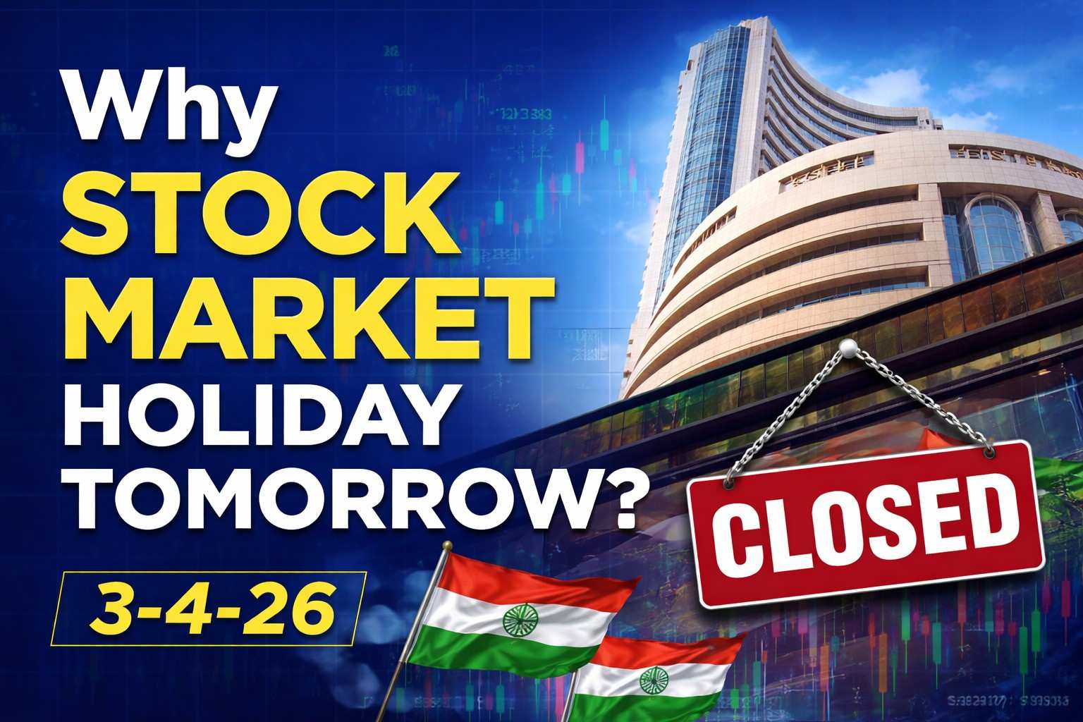 If you are searching why the stock market is closed tomorrow, here is the exact reason. The Indian stock market will remain closed on 3 April 2026 due to the Good Friday holiday. You can also review the detailed breakdown of the Stock Market Prediction for Tomorrow (2 April 2026): Nifty & Sensex Outlook, Support & Resistance Levels.